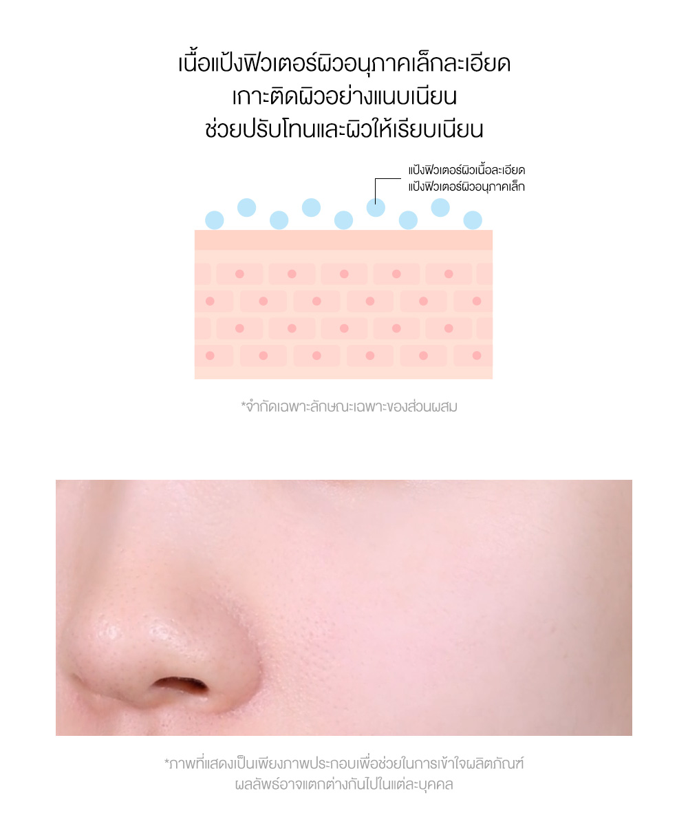 ☁️ ฟินิชแบบ Soft Blur – ปกปิดรูขุมขนและความหมองคล้ำ ให้ผิวดูเนียนละมุนราวกับฟิลเตอร์กล้อง